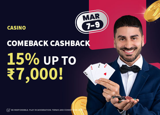 - Users will receive a 15% cashback up to ₹7,000 on their total net losses (total losses minus total winnings) from all qualifying Casino bets during the promotion period.